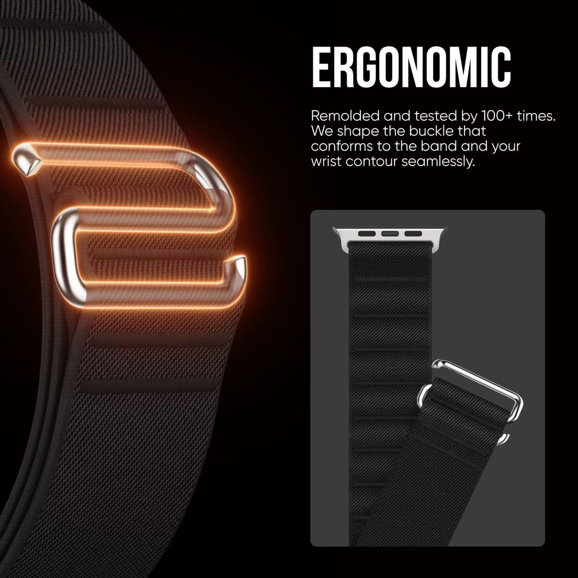 Günlük stile ve spor antrenmanlarına uygun, nefes alan dokuma kumaş Apple Watch kordonu. Hafif yapısı, yumuşak dokusu ve ayarlanabilir tasarımıyla bileğe konforlu şekilde oturur.