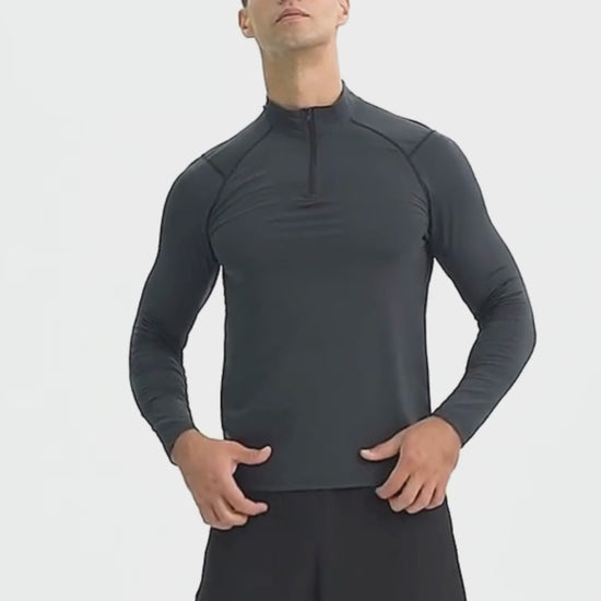 Erkek uzun kollu 1/4 fermuarlı (quarter-zip) antrenman üstü, deniz yeşili (teal) melanj rengi ve yüksek yaka tasarımıyla hem antrenmanda hem günlük kullanımda güçlü bir görünüm sunar. Nefes alan, esnek ve hızlı kuruyan kumaş teri vücuttan uzaklaştırarak gün boyu hafif konfor sağlar; raglan kol kesimi ve rahat kalıp hareket özgürlüğünü destekler.