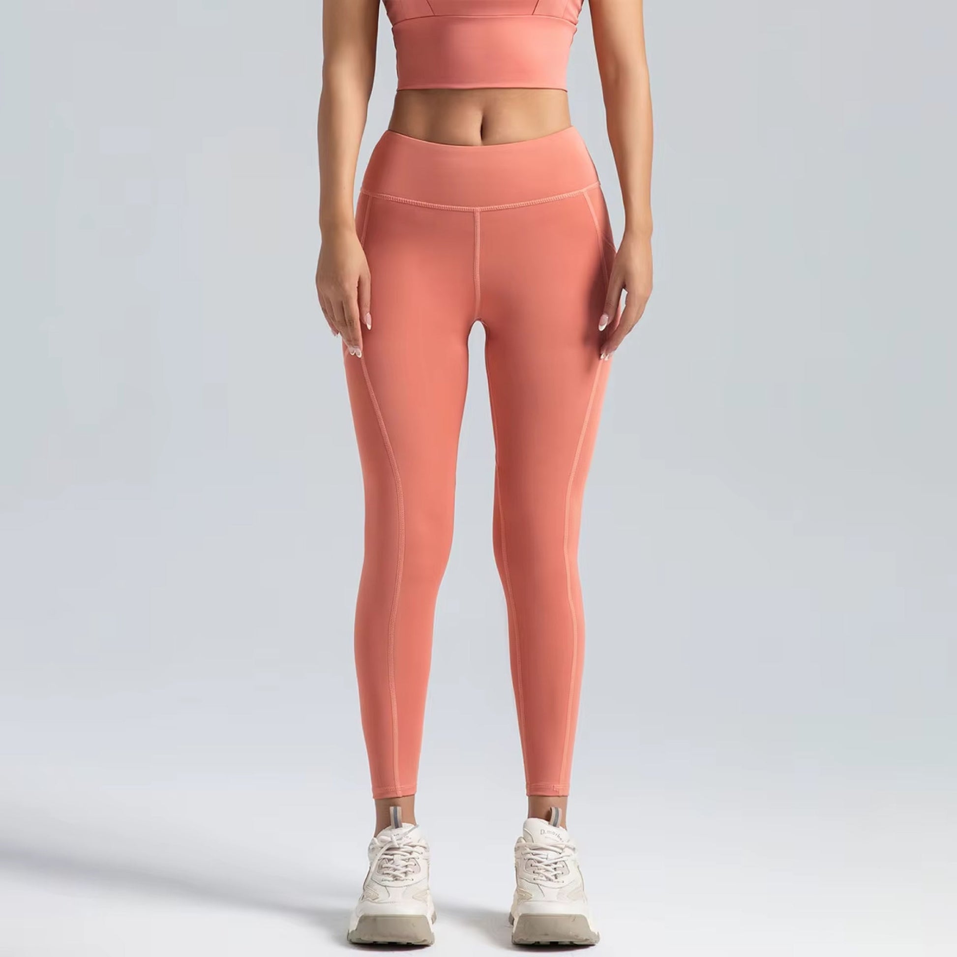 Yüksek Bel Cepli Spor Yoga Taytı – Dikişsiz, Push Up Etkili